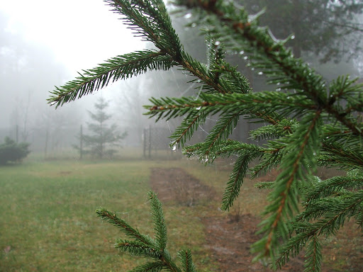 Branch again, and blurred background, yet this is an open composition, cause there's something in the back, and who knows maybe it is even more important than the wet greens in front? Such photos leave your imagination a bit to ponder upon.